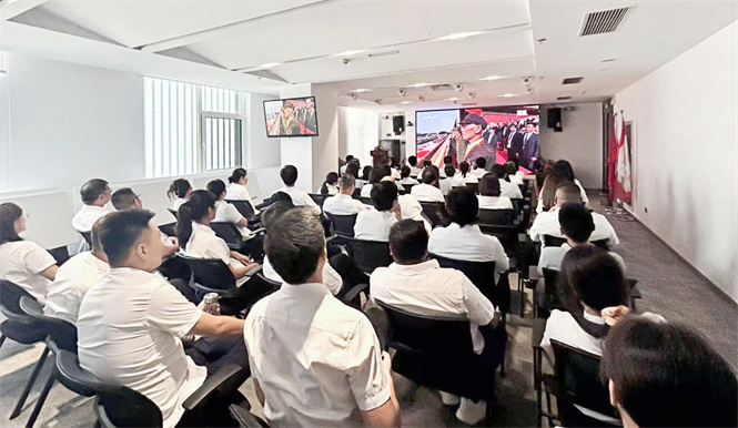 在觀看過程中,受閱部隊整齊劃一的步伐、先進精良的武器裝備,無一不讓員工們心潮澎湃。屏幕上,一個個方陣如鋼鐵長城般威嚴,新型戰(zhàn)機呼嘯而過,新型導彈整齊列陣,展示著國家強大的國防實力。員工們的目光始終緊緊跟隨,不時爆發(fā)出熱烈的掌聲和由衷的贊嘆?!翱吹皆蹅儑业能婈犨@么強大,真的太驕傲了!” 現(xiàn)場觀看的員工紛紛表示,“我對國家的未來充滿信心,也更有動力做好自己手頭的工作?!?nbsp;